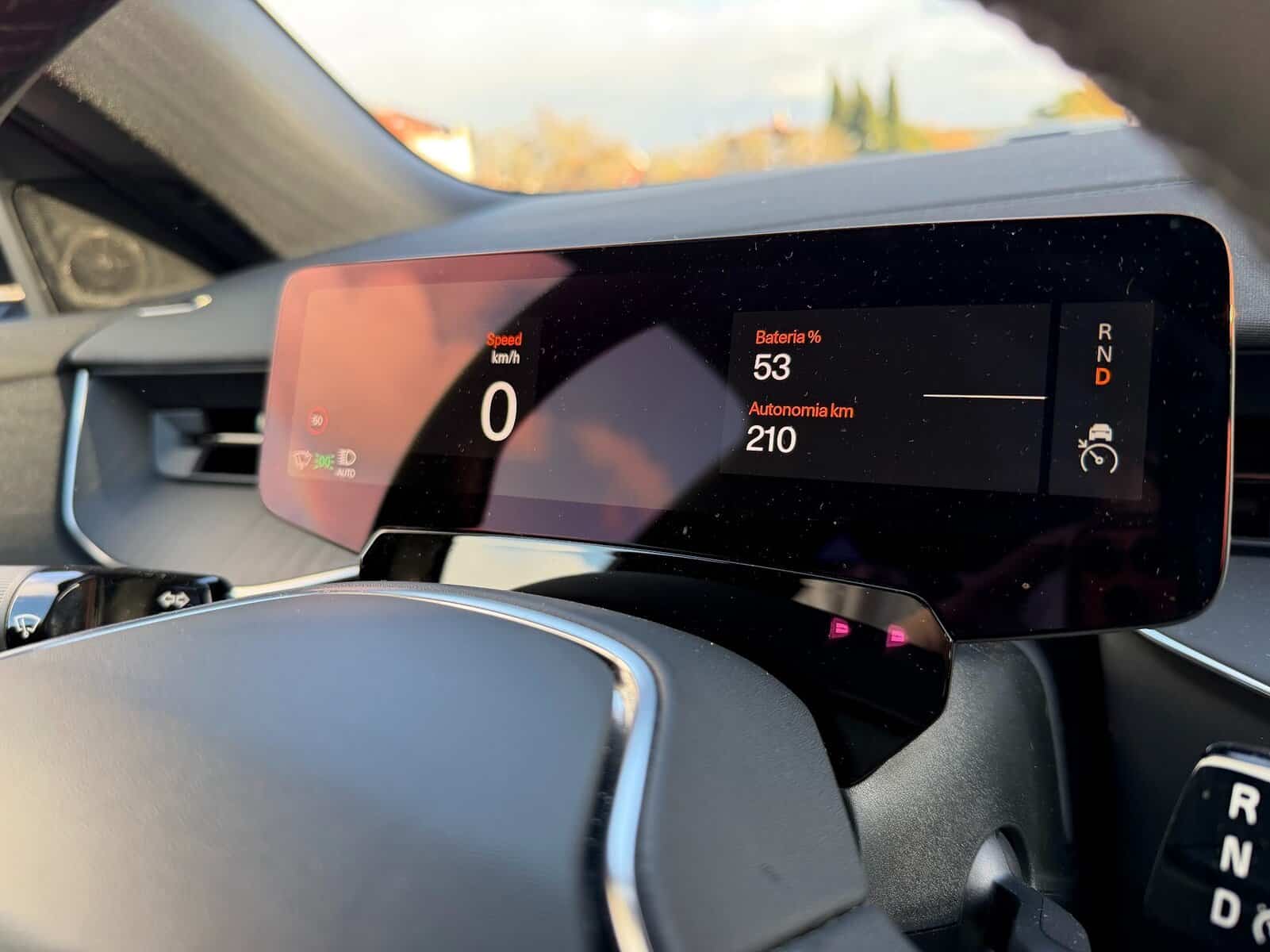 Na prática, o teste revelou números mais curtos. Mas isto é normal, porque o meu pé é muito mais pesado face ao que é suposto, e é feito nos testes. Com a bateria a 100%, o carro marcava 510 quilómetros, depois de fazer alguma autoestrada, rapidamente começou a marcar 420 quilómetros com a bateria cheia.