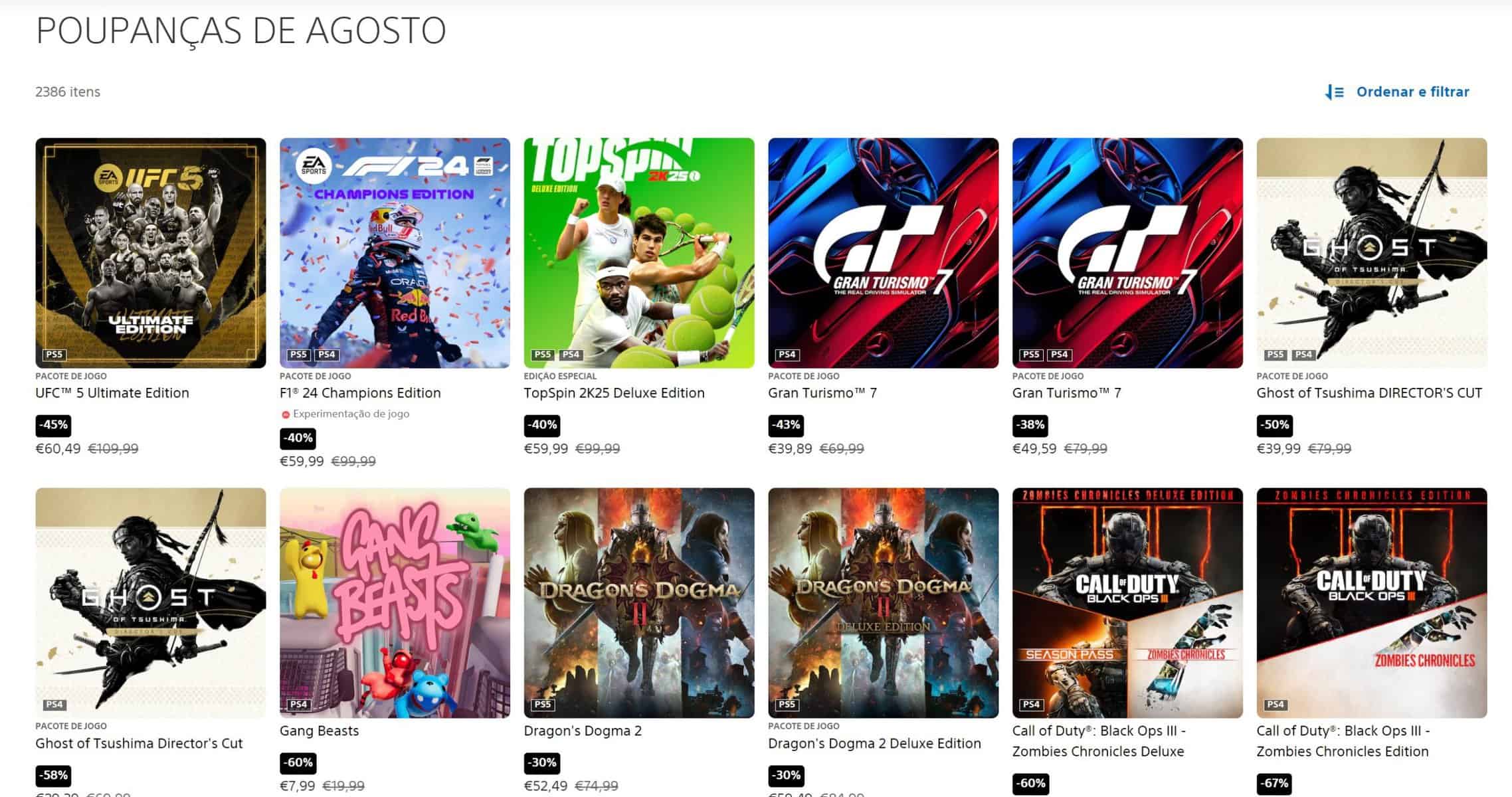 Se não quer gastar o subsídio de férias todo em jogos, então a PlayStation Store vai ajudar a gastar só uma pequena parte. Tudo isto deve-se à campanha Poupanças de Agosto que acaba de arrancar. Graças a ela há descontos loucos na PlayStation Store. Assim é possível adquirir títulos para a PlayStation 5 e para a PlayStation 4 a um preço único na PlayStation Store até ao próximo dia 28 de agosto.