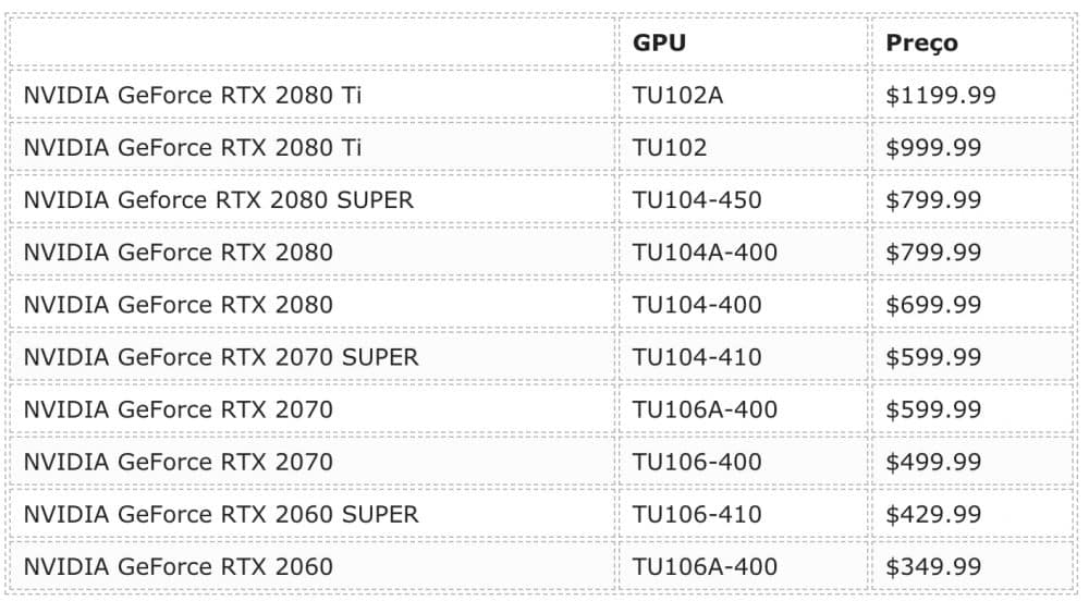 Como mencionei em cima, a NVIDIA também vai lançar uma nova versão da RTX 2080 Ti! E pelos vistos, também uma RTX 2070 Ti. Num lançamento, que deverá substituir todas as placas que estão agora no mercado, bem como adicionar alguns escalões.