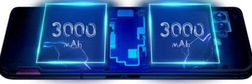 - Bateria: 6000mAh (Dual -> duas células de 3000mAh com carregamento rápido de 65W)