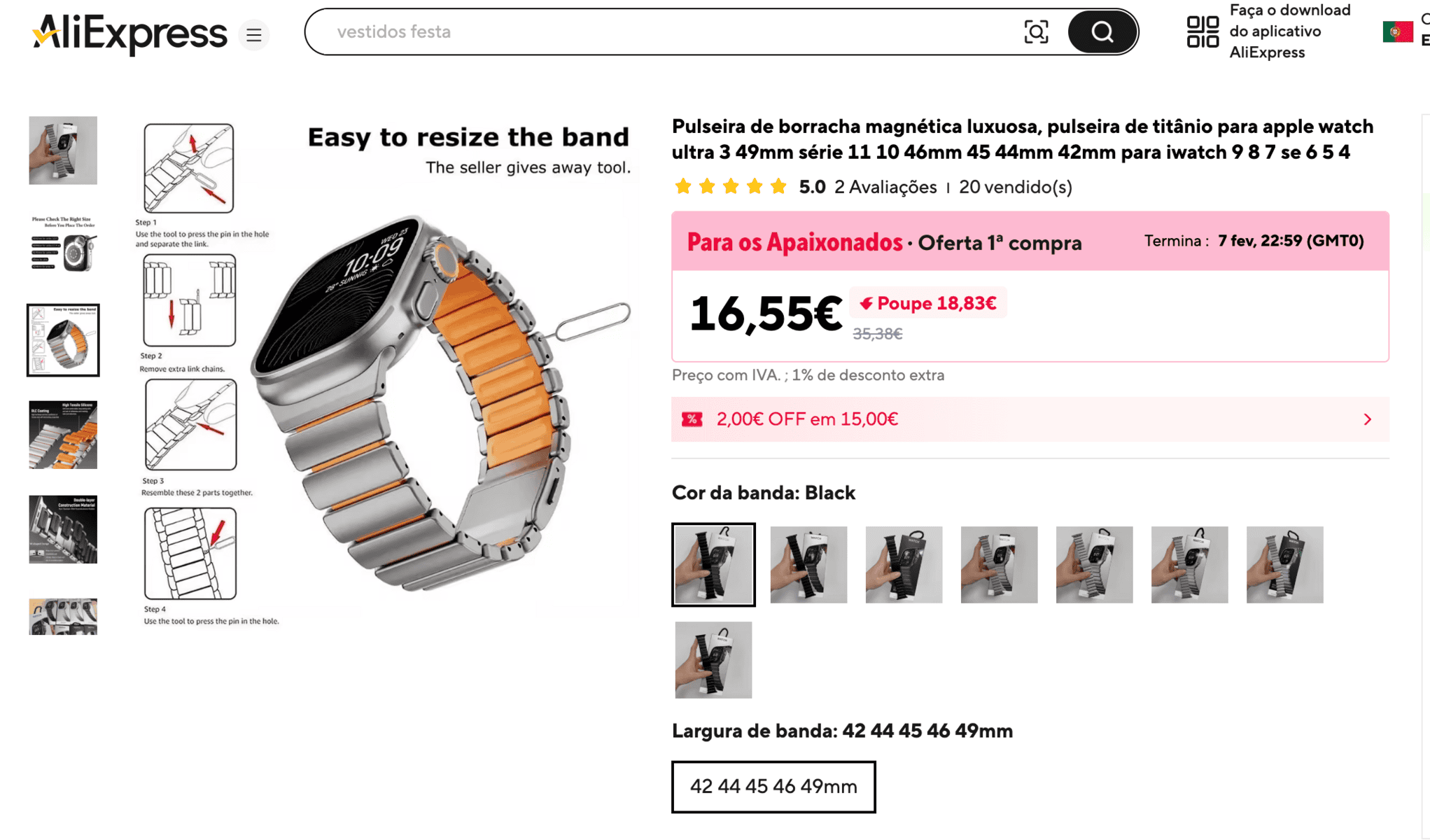 Produtos que gosto de ver nos anúncios, e até tenho vontade de encomendar. Mas… 100€ por uma bracelete? Mas está tudo louco? Claro que não. É por isso que logo a seguir vou tentar pesquisar esse mesmo produtos em outros lados, e rapidamente encontro a preços bastante mais interessantes.