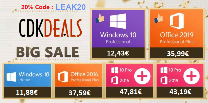 - Windows10 PRO OEM + Office2019 Professional Plus CD Keys Pack – €43.19