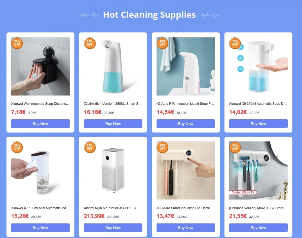 Assim, além das máscaras, termómetros, entre outras coisas… Temos ainda dispensadores de sabonete eletrónicos, purificadores de ar Xiaomi, entre outras coisas. Bem, nada melhor que dar uma vista de olhos ao que temos ao nosso dispor. (Link Aqui)