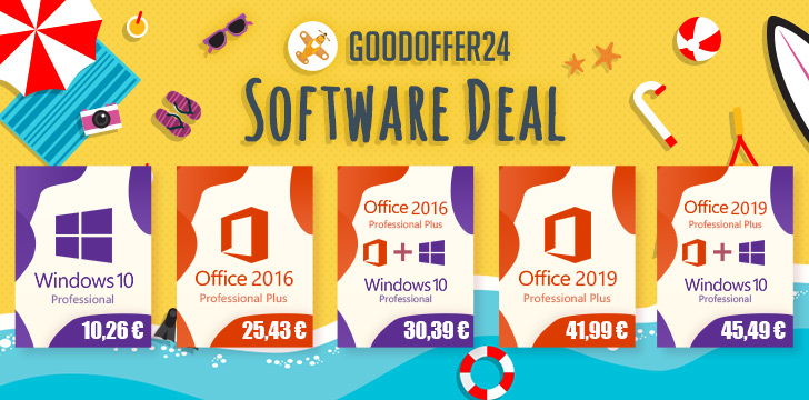 - Windows 10 Pro + Office 2016 Pro -Bundle a 39 Euros