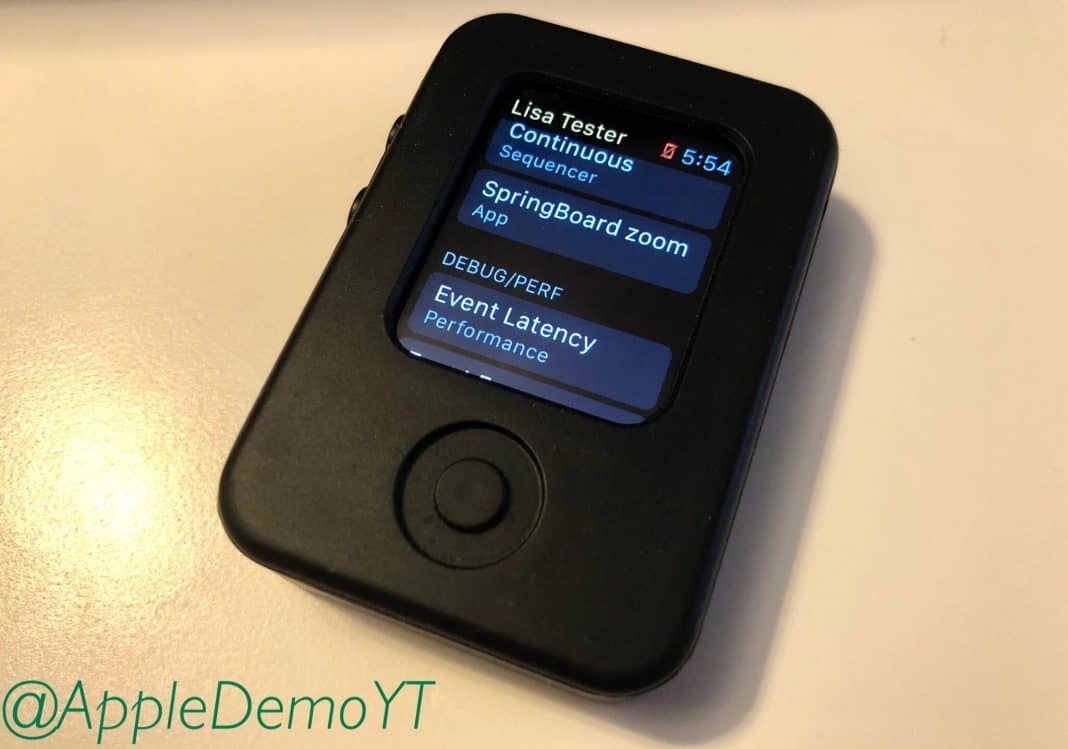 Se olharmos para o protótipo, entre os ícones das aplicações vemos uma imagem amarela da Lisa Simpson. De acordo com o Apple Demo, isto é uma referência inteligente ao computador Apple Lisa. Dito isto, esta app testa determinadas funcionalidades deste relógio. Entretanto, nesta altura podemos perceber que este relógio ainda não tinha a coroa digital.