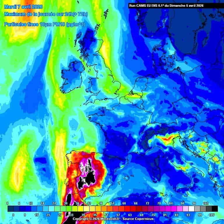 Por outro lado, a origem deste fenómeno já está perfeitamente documentada. Os mapas e modelos fornecidos pelo Copernicus Air Monitoring System confirmam que se trata de uma vasta nuvem de poeiras com depósito proveniente do Norte de África, empurrada diretamente para a nossa atmosfera pelas correntes de ar.