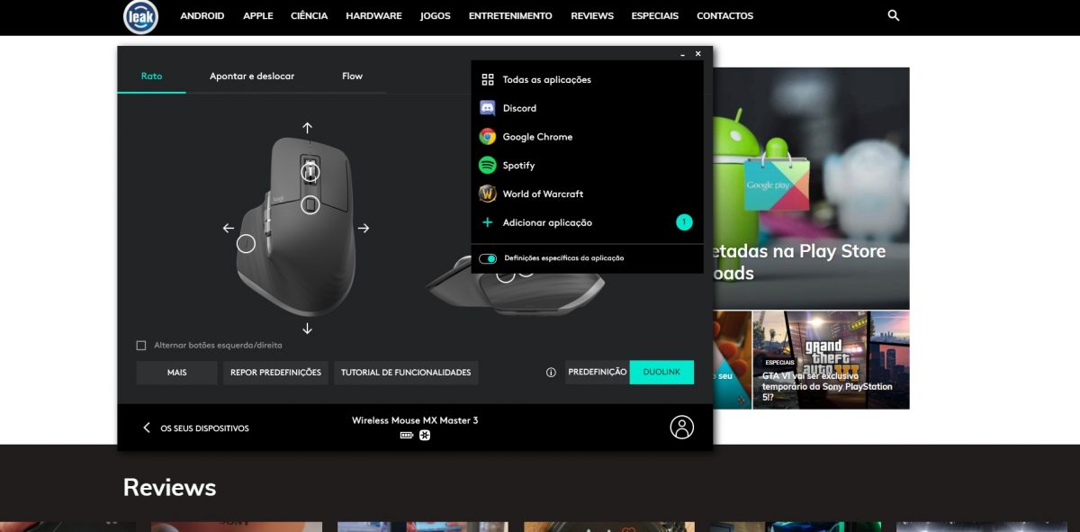 O MX Master 3 vem com uma aplicação a acompanhar, a Logitech Options que lhe irá permitir mudar muita coisa acerca do rato, para ficar completamente ao seu gosto.