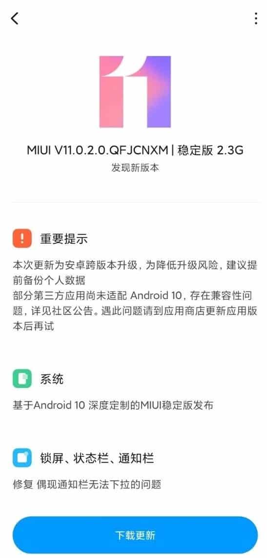 A nova atualização do MIUI está a ser lançada na China para e o changelog fala claramente do Android 10. A atualização chega como MIUI V11.0.2.0QFJCNXM e tem 2,3 GB de dimensão.