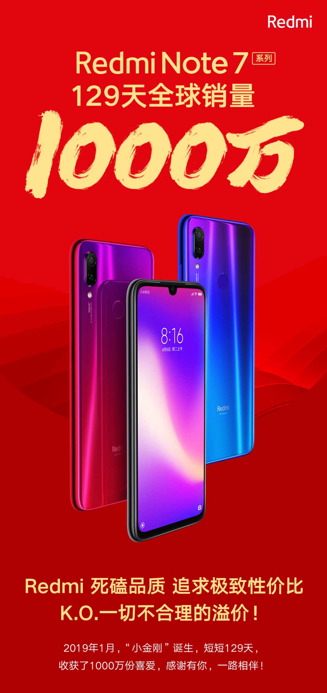 A Xiaomi está definitivamente a passar um bom momento. Oxalá o Tio Trump não coloque os olhos neste fabricante como fez com a Huawei. Para além do lançamento do Redmi K20 que ocorre amanhã, a Xiaomi tem outros motivos para celebrar. A gama Redmi Note 7 ultrapassou os 10 milhões de unidades vendidas e conseguiu fazê-lo em apenas 129 dias! Este é um grande marco para a Xiaomi.