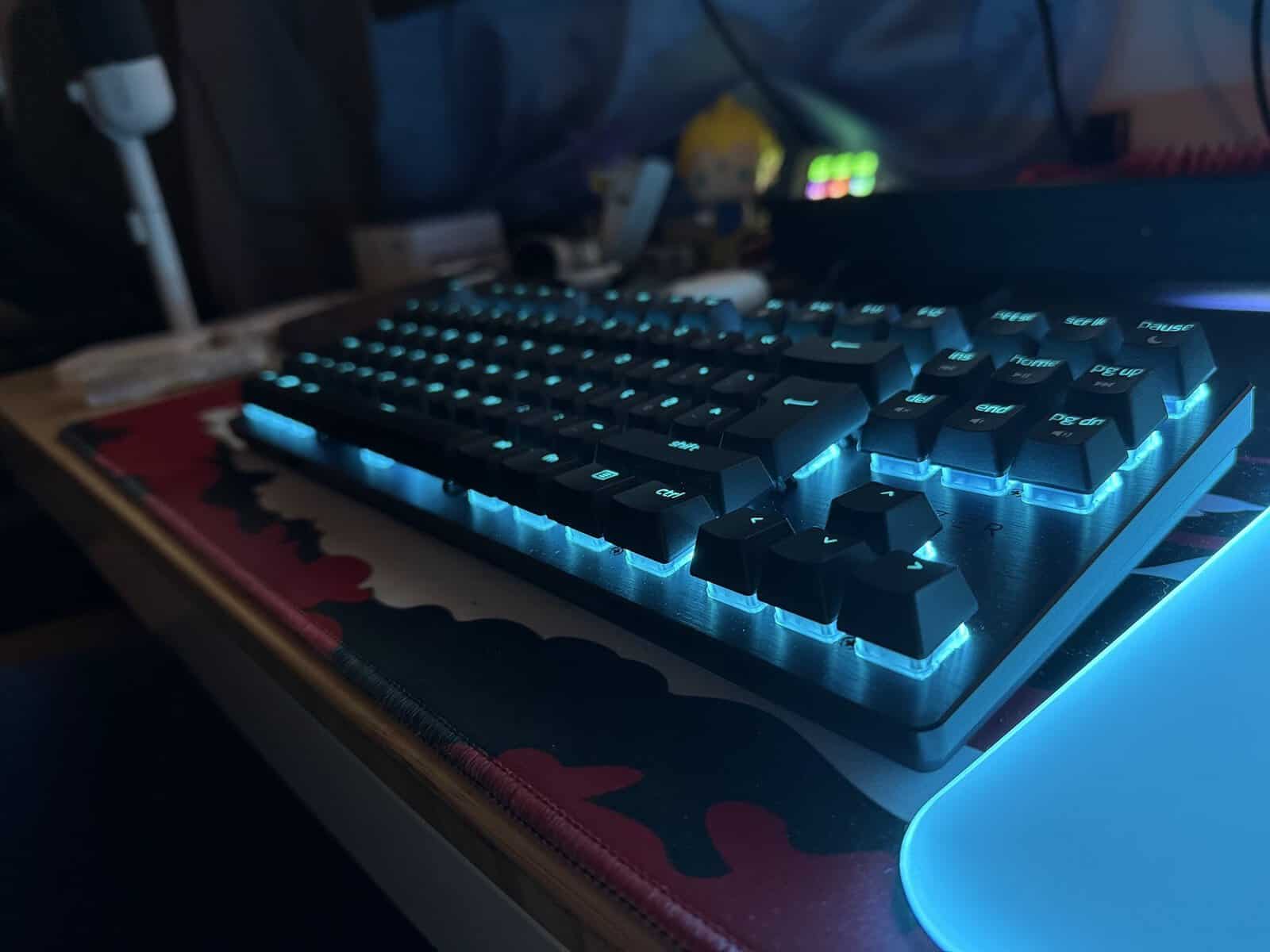 É um teclado TKL (Tenkeyless), que claro está, deixa para trás a parte numérica, para se concentrar naquilo que os jogadores realmente querem. Continua a ser um teclado com um maior foco no espaço e peso. Ainda assim, continua pensado para os jogadores que querem um nível de performance muito acima da média, num formato mais compacto, leve, e que possa ser levado para qualquer lado.