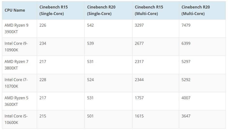 Portanto, os testes que chegaram à Internet são relativos a alguns resultados do Cinebench R15 e R20, e pelos vistos, a AMD vai mesmo ficar por cima da Intel. Até no campo da performance single core! Visto que o 3900XT parece meter o 10900K no bolso com 542 pontos contra os 539 pontos do CPU rival.