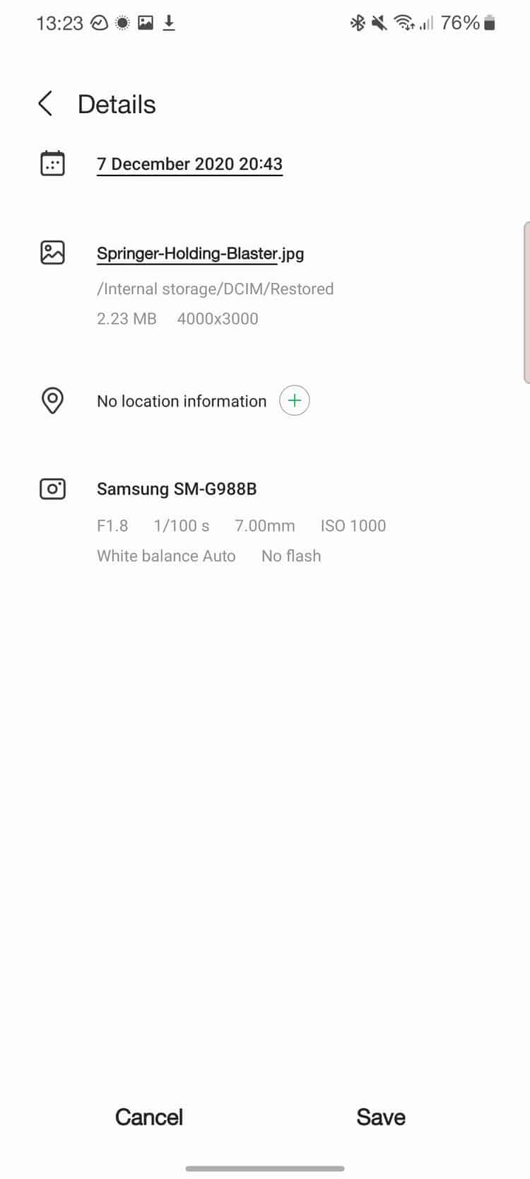 Como foi revelado pelo utilizador do Reddit Kidi_Galaxy a nova funcionalidade permite editar os metadados de uma foto. Para isso basta abrir-se, carregar no menu e escolher a opção detalhes.