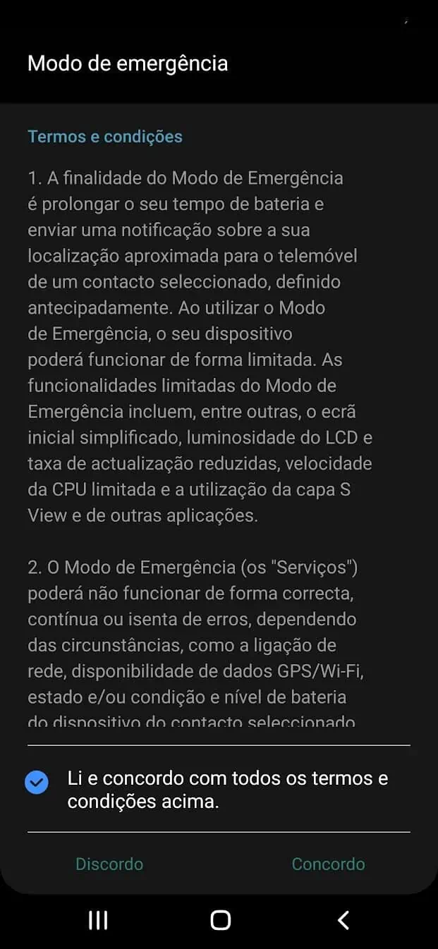 O modo de emergência é algo que está presente nos Samsung Galaxy e permite ganhar tempo extra em situações de emergência. Esta definição irá otimizar o seu dispositivo para economizar a energia da bateria durante o maior tempo possível enquanto procura ajuda.