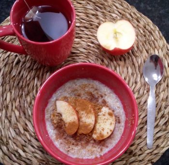 - Papas de aveia de bebida de amêndoa, maçã e canela