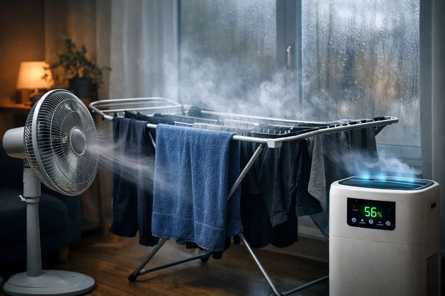 Secar roupa no inverno é aquele clássico: estendal na sala, janelas fechadas, e a sensação de que nunca mais seca. E depois vem o plano B: ligar o desumidificador… e deixar aquilo horas e horas, até parecer que estás a tentar secar a casa inteira. Só que o truque que funciona mesmo não é ter um desumidificador. É transformar uma divisão num mini-secador controlado. E faz-se com um ajuste simples que quase ninguém faz. Assim vais conseguir secar roupa dentro de casa sem contas da luz muito altas.