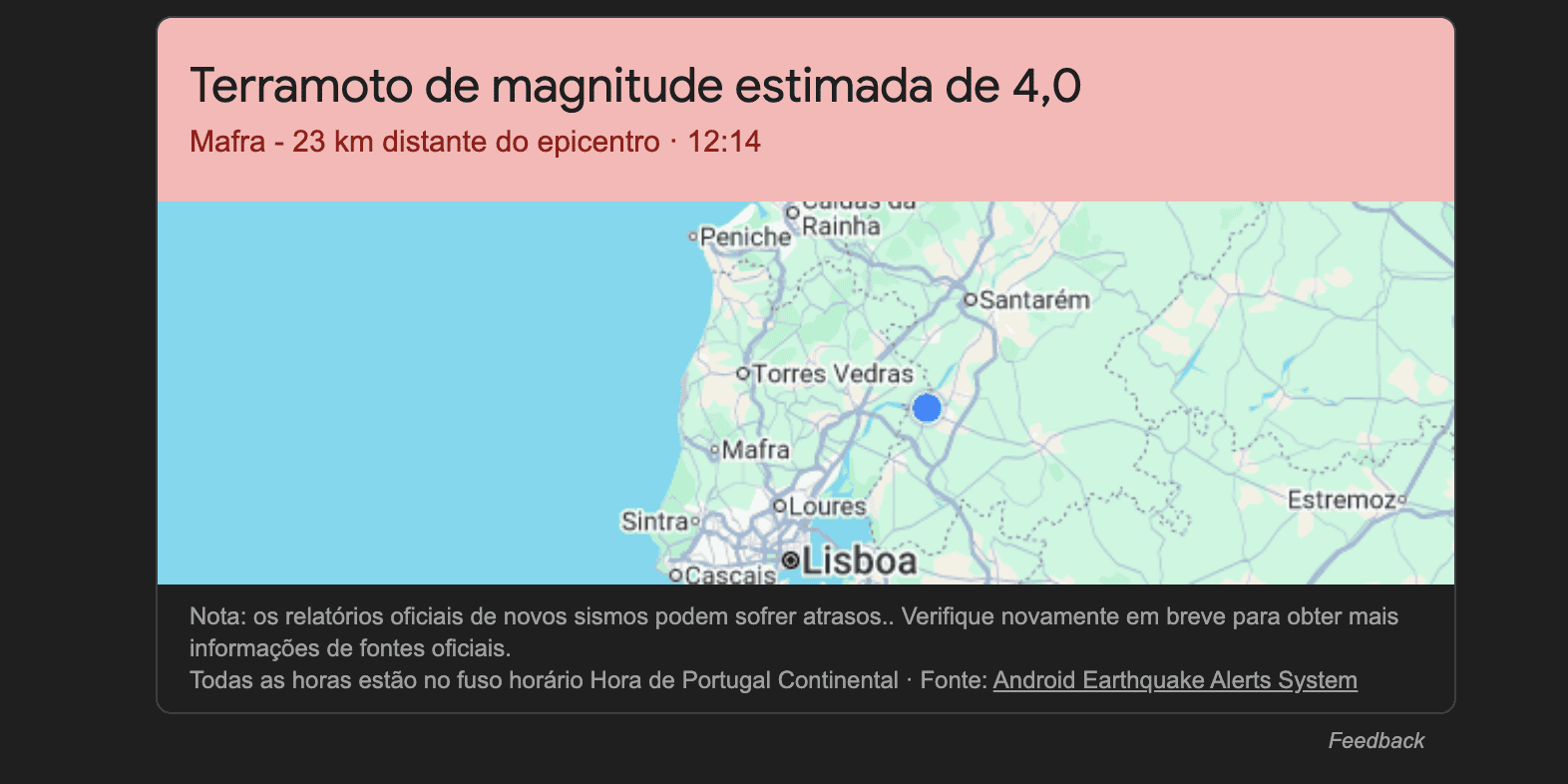 Se por acaso sentiste a terra a tremer um bom bocado, não foi impressão tua, existiu mesmo um terramoto de magnitude estimada de 4.0 em Portugal, com epicentro na zona de Mafra. Ainda se fazem sentir as réplicas.