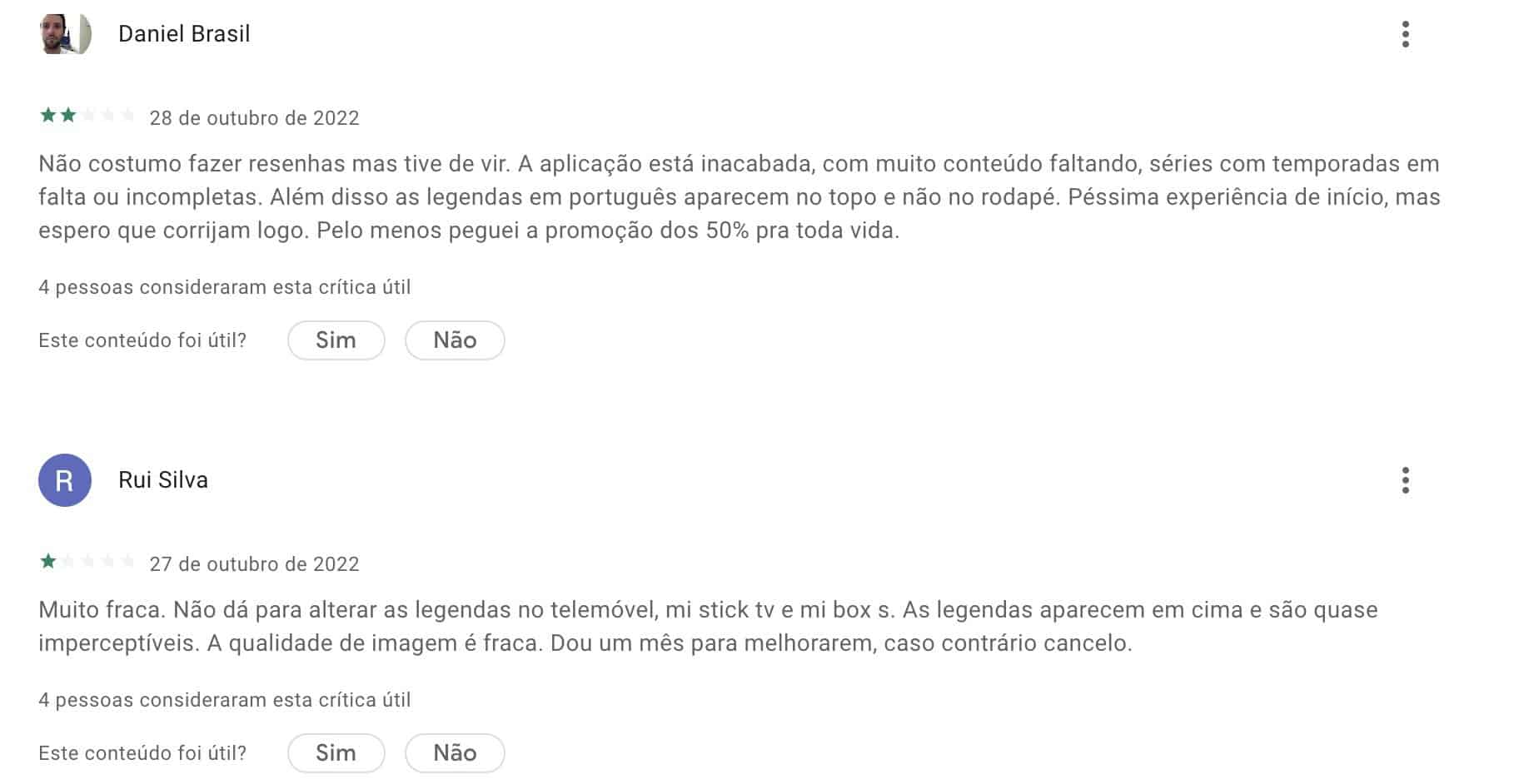 De facto, a maioria das queixas falam de problemas com as legendas que aparecem em cima ou praticamente imperceptíveis e de conteúdos incompletos.