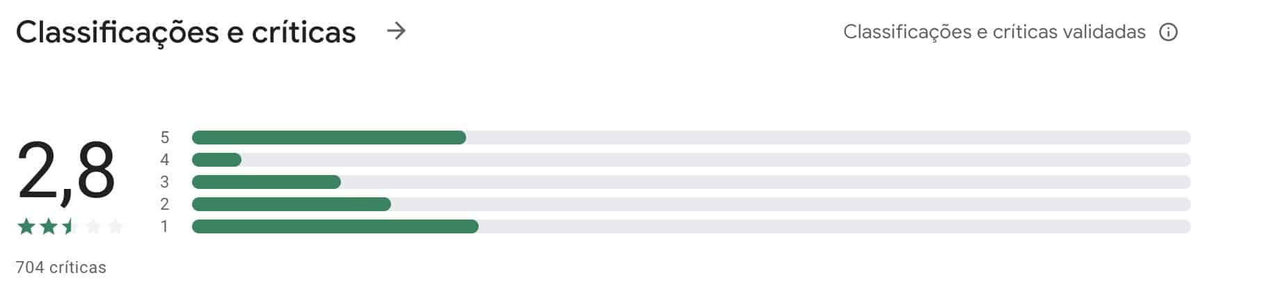Quando vemos a classificação desta app na Google Play Store, ou seja, 2.8 ficamos logo a perceber que algo está muito errado.