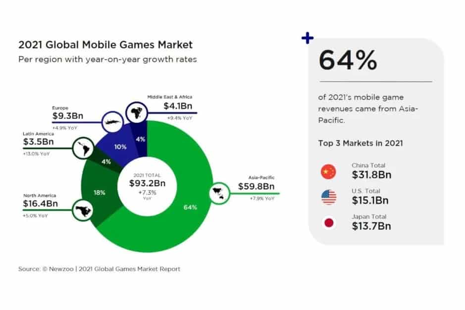 Surpreendentemente, o mercado chinês trouxe de longe a maior fatia da receita total, gerando mais de 30 mil milhões de dólares no último ano. Os Estados Unidos, em comparação, arrecadaram 15 mil milhões de dólares, enquanto o Japão fez pouco menos de 14 mil milhões de dólares.