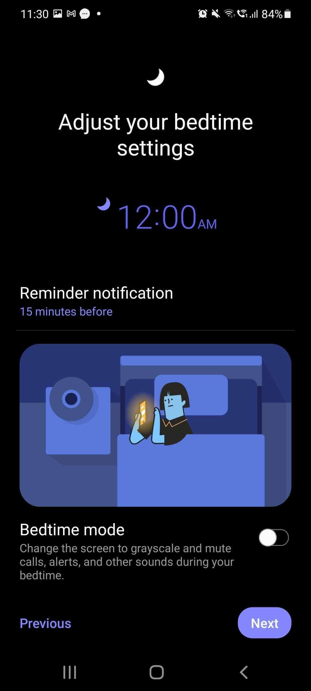 A versão mais recente da aplicação do relógio da Samsung pode ajudá-lo a acompanhar os seus padrões de sono. Pode definir o seu horário diário de sono (hora de ir dormir habitual e hora de despertar) no Modo De Dormir. Assim vai ficar a saber a quantidade de sono durante esse tempo. Muitas vezes vamos para a cama e não conseguimos dormir. Entretanto, a aplicação presente nos smartphones Samsung também pode lembrá-lo todos os dias da hora de ir para a cama. Para ajudá-lo a dormir melhor, a aplicação também pode integrar-se com a aplicação de Bem-Estar Digital do Android para silenciar todas as notificações recebidas e transformar o ecrã do smartphone.