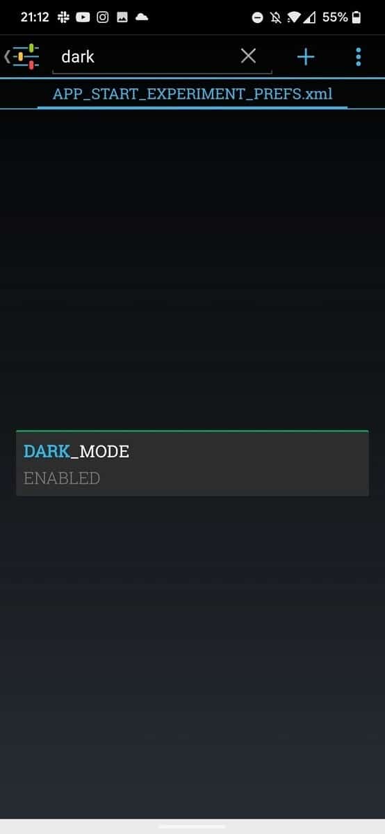 Agora localize no ficheiro a flag DARK_MODE, escolha ENABLED e tudo estará resolvido.