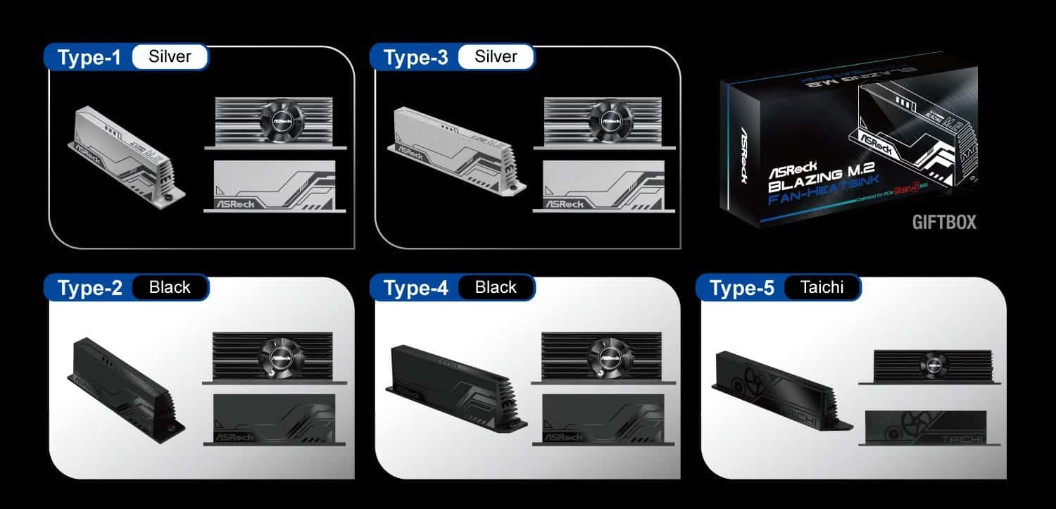 Mais concretamente, no caso do Blazing M.2 PCIe Gen5 SSD, o dissipador de calor já traz uma ventoinha incluída, com a ASRock a garantir compatibilidade com a quase totalidade de motherboards X670E, B650, B650E e Z790 já lançadas. (A fabricante oferece uma lista de compatibilidades.)
