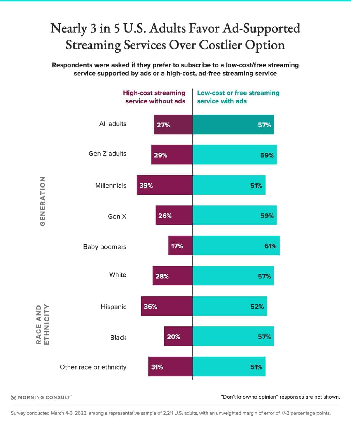 Portanto, segundo um novo estudo de mercado, o público Americano não só não está contra, como até prefere, ter acesso a um pacote com anúncios, mas que em contrapartida, é um pouco mais barato.