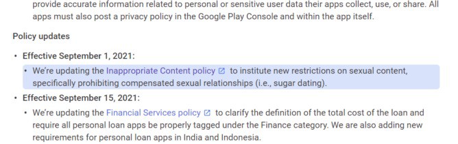 O site TheVerge refere que as políticas da Google já proíbem apps que promovem serviços que trocam atos sexuais por compensações. No entanto, ainda não era tudo muito claro. Agora já é.