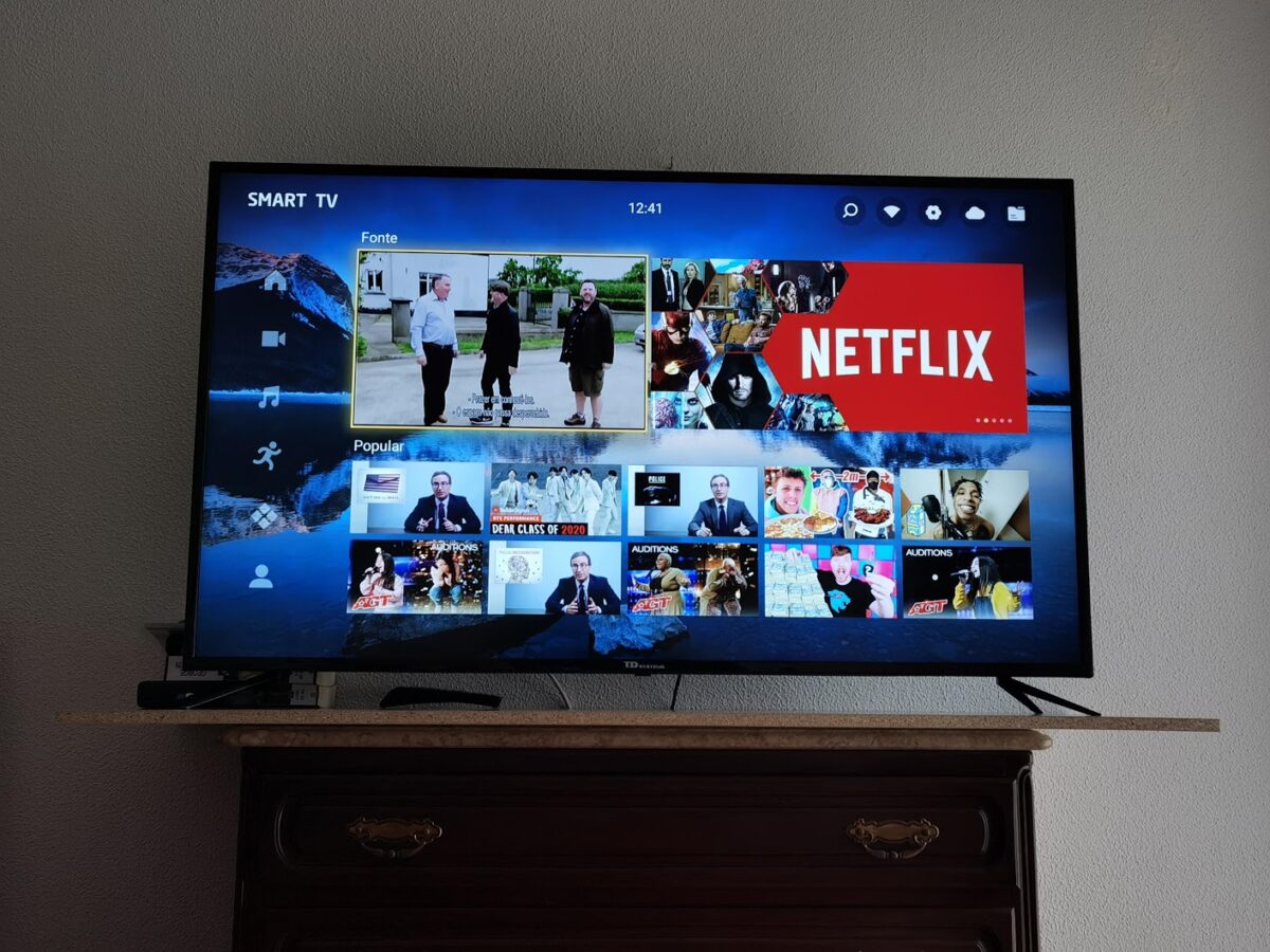 Como SmartTV baseada no sistema operativo Android, esta TV TD Systems é realmente muito interessante. Afinal de contas, temos um sistema preparado para muita coisinha boa, seja através da instalação de aplicações na própria App Store da TV, ou até APKs que queira instalar através de uma pen. Em suma, temos acesso à Internet tanto com fios como sem cabos, assim, temos acesso às apps mais populares do mercado como o YouTube, Netflix, Facebook, etc…