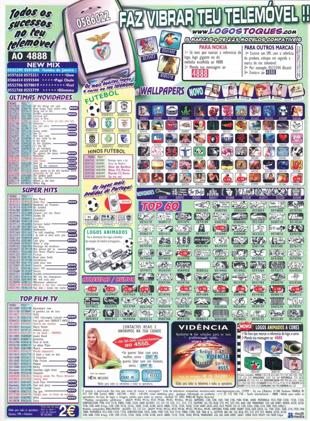 Havia verdadeiros clássicos dessa era: o Crazy Frog invadiu meio mundo com o seu toque, os Tribalistas dominavam os tops portugueses, e até havia quem pagasse por “alertas de golos” que muitas vezes chegavam com 15 minutos de atraso.