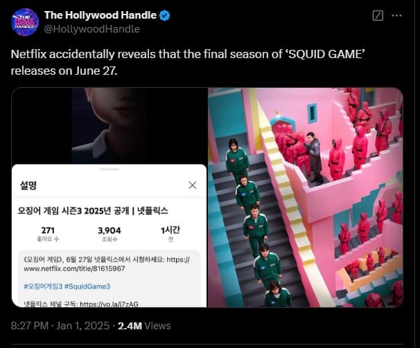 Oficialmente, a Netflix só confirmou que a 3ª temporada de Squid Game chegaria à plataforma em algum momento de 2025. Isto com o criador da série Hwang Dong-hyuk a dizer que tudo seria anunciado em breve e que esperava que chegasse à TV por volta do verão ou outono do próximo ano.
