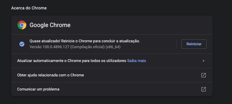 Se tiverem algo semelhante à janela abaixo significa que o browser da Google não está atualizado. Neste caso específico então será procurada uma nova atualização e depois é só darmos um clique em Reiniciar para que fiquemos com a última versão.