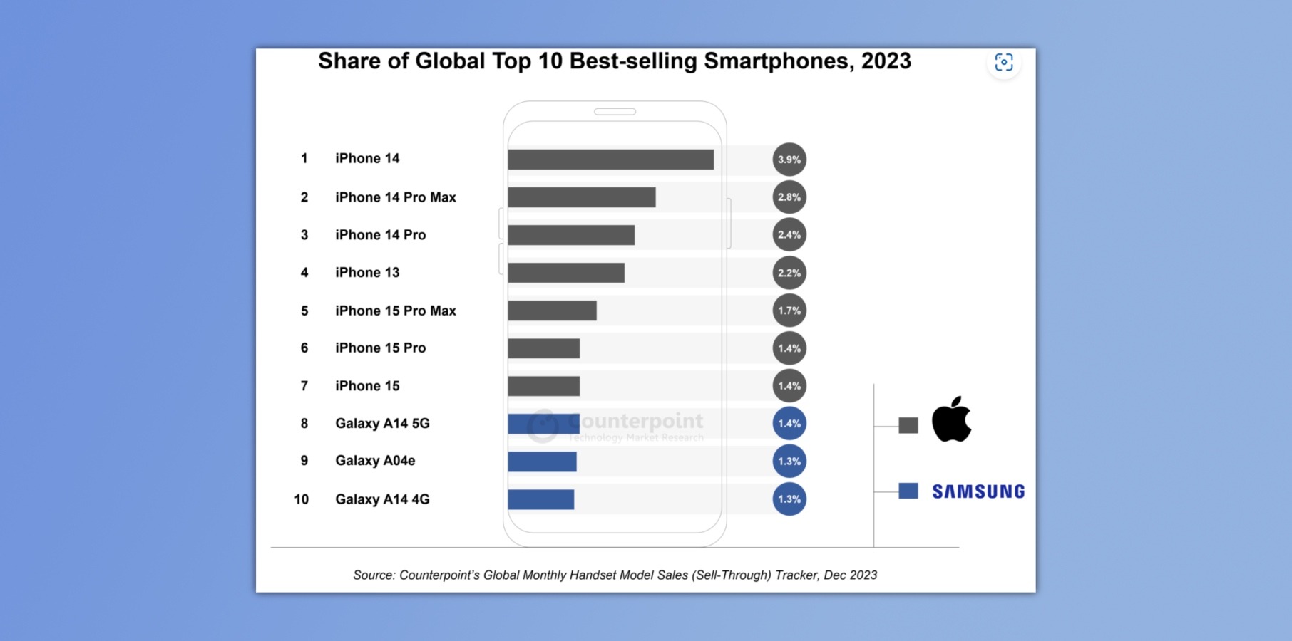 Sendo exatamente por isso que acaba por não ser novidade para ninguém ver tanto iPhone na lista de 10 smartphones mais vendidos em 2023. Mas… 7 em 10? Isto é uma novidade!