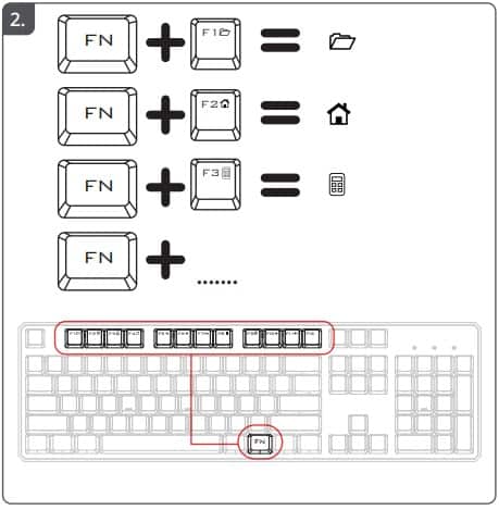 Apesar de não termos teclas de atalhos dedicadas elas estão presentes neste teclado e podem ser acedidas através da tecla de função.
