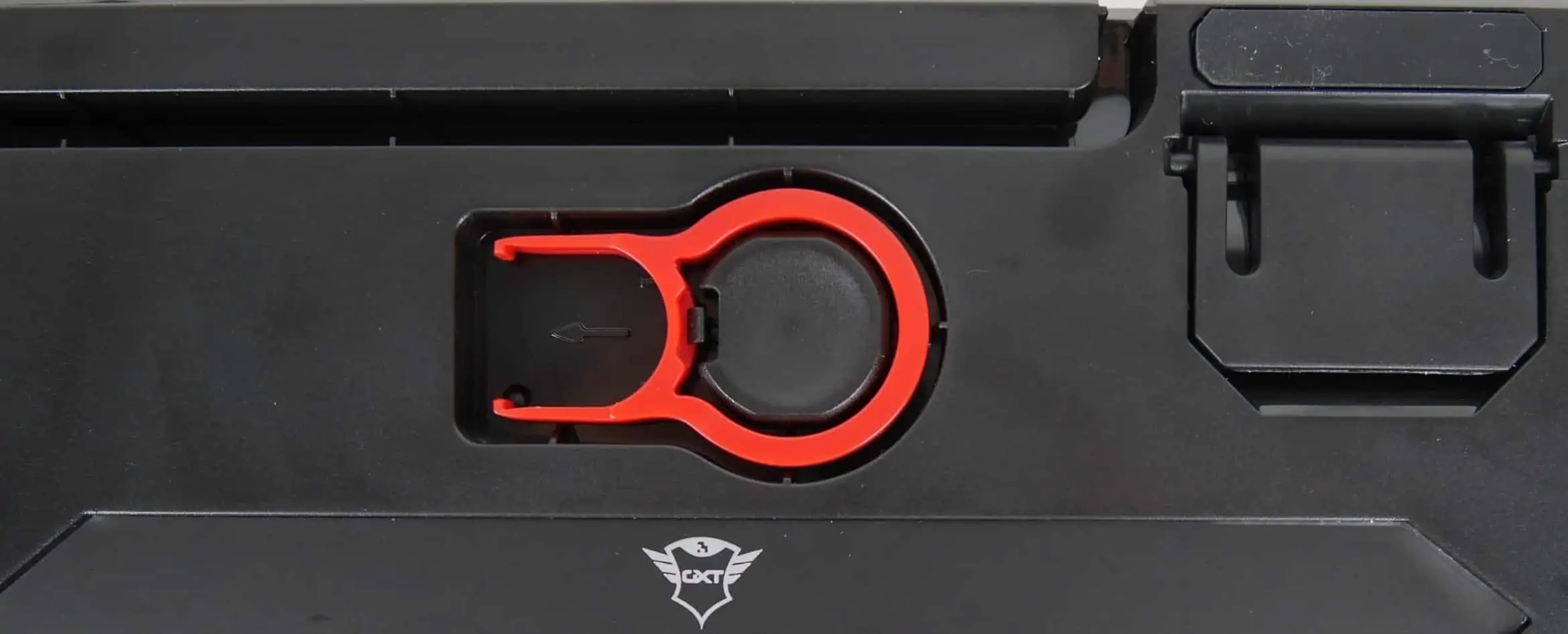 Agora um aparte. Por vezes temos necessidade de tirar as teclas por uma questão de limpeza. Ora esta aposta da Trust vem com um acessório para este efeito que fica guardado na parte inferior do dispositivo. É algo que nem costuma vir, mesmo em teclados de topo.