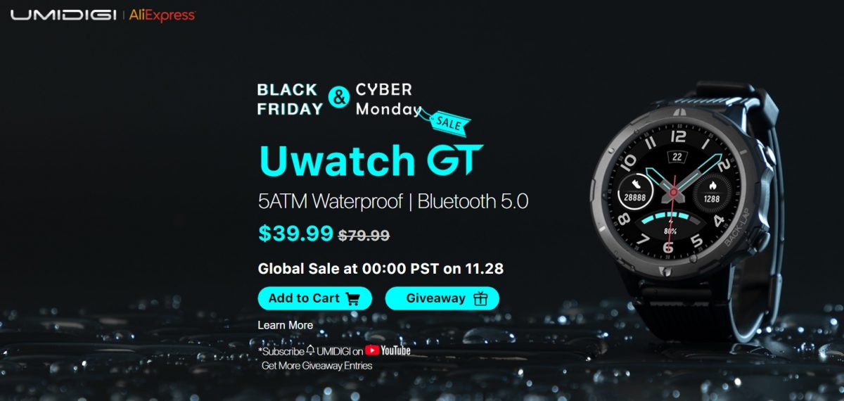 No evento de lançamento, a UMIDIGI vai baixar o preço do Uwatch GT para metade no Black Friday e Cyber Monday!