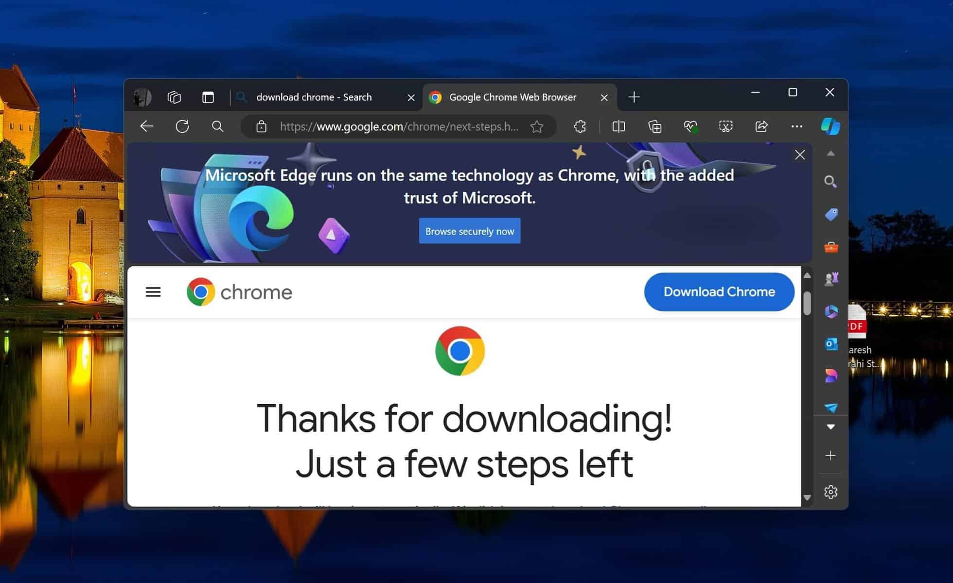 Existem várias outras referências à campanha “Use o Edge, não o Chrome”.
