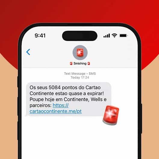 • Assim recebes uma mensagem por SMS, WhatsApp ou email a dizer que ganhaste um vale de desconto de uma cadeia conhecida (Continente, Pingo Doce, Lidl, Auchan, etc.).