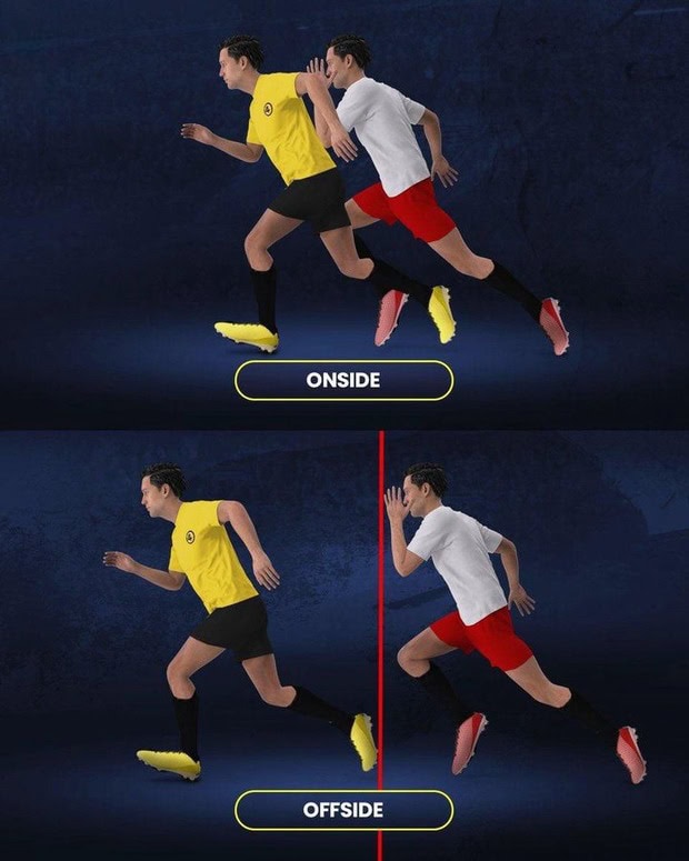 Um jogador só estaria em fora de jogo se todo o corpo estivesse à frente do último defesa. Não bastaria um pé, um joelho ou um ombro ligeiramente adiantado. Enquanto houver qualquer parte do corpo em linha com o defesa, o lance segue.