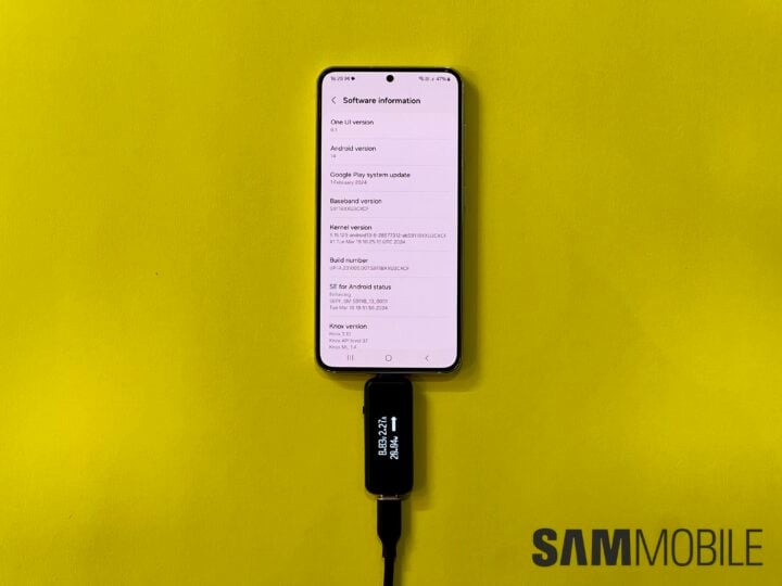 O Galaxy S23 suporta um carregamento de até 25 watts. No entanto, no fórum da comunidade da Samsung, um utilizador que atende por ‘Pruone’ fez uma publicação alegando que o One UI 6.1 restringiu a velocidade de carregamento do Galaxy S23 a 15 watts. O utilizador partilhou uma captura de ecrã do Electron, uma aplicação que fornece estatísticas da bateria e do carregamento, que mostra que o dispositivo está a carregar a 15 watts. Citando esse post, uma conta no X/Twitter com o identificador @theonecid perguntou às pessoas se estavam a enfrentar o mesmo problema. Entretanto muitas pessoas notaram que o seu Galaxy S23 estava a carregar a uma velocidade mais lenta.
