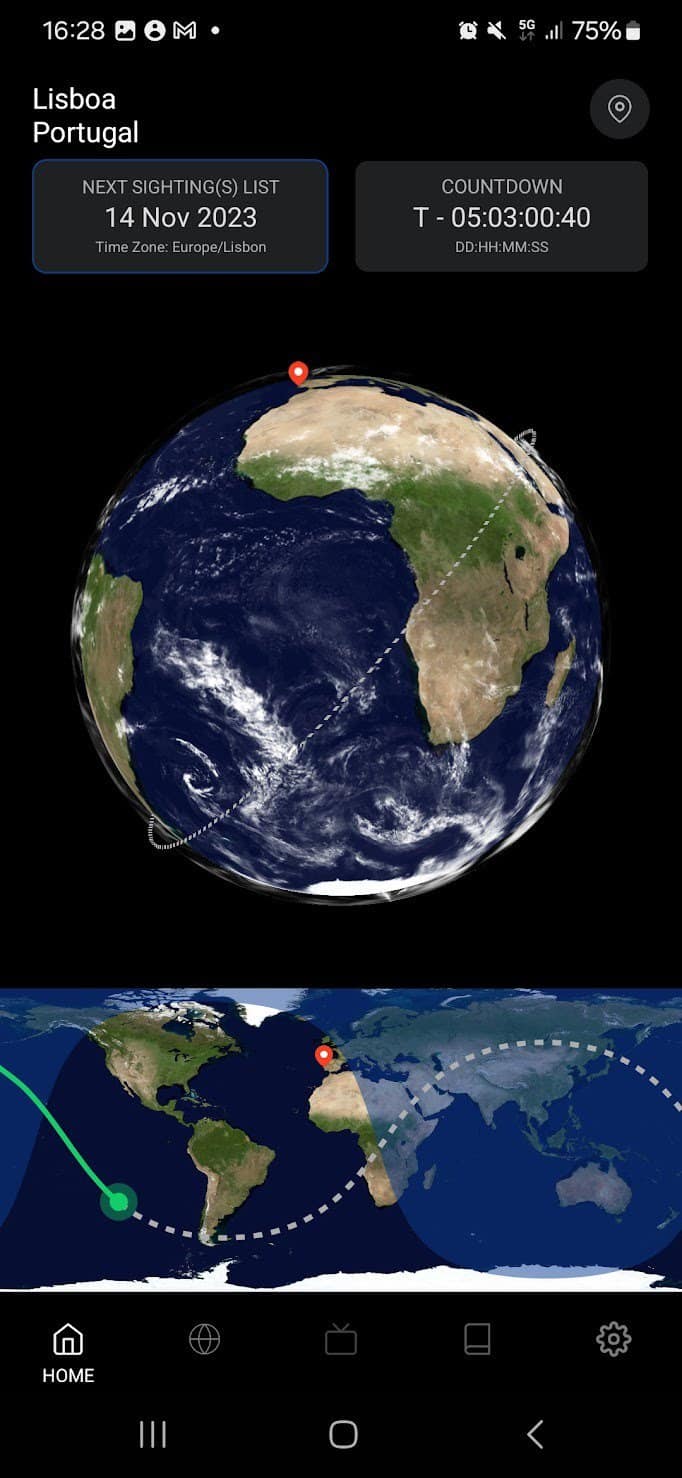 A aplicação Spot the Station está disponível para iOS e Android. Dito isto, permite-lhe definir a sua localização e ver quando a estação estará visível. Mostra também quando será o próximo avistamento da estação a partir da sua localização. A isto junta-se uma contagem decrescente, e um mapa e um globo que mostram a posição da estação sobre a Terra.