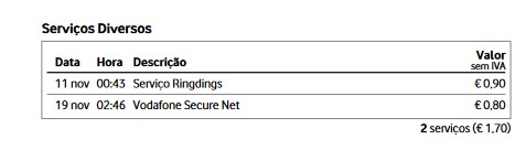 Por exemplo ao analisar a minha fatura percebi que ainda tenho ativo há vários anos o serviço Ringdings que custa 90 cêntimos por mês. Se o desativarmos ficamos a pagar 130,70.