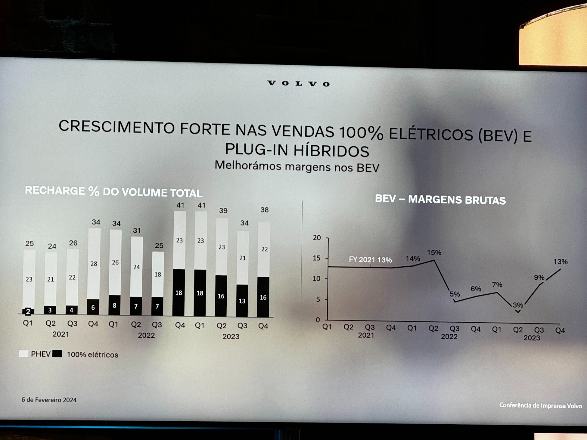 Portanto, a Volvo Car Portugal apresentou hoje, em Lisboa, os resultados referentes ao ano de 2023. Claro que, antes de entrar no tema Portugal, tudo começou com uma introdução aos objetivos da empresa a uma escala mais global, bem como os resultados da mesma.