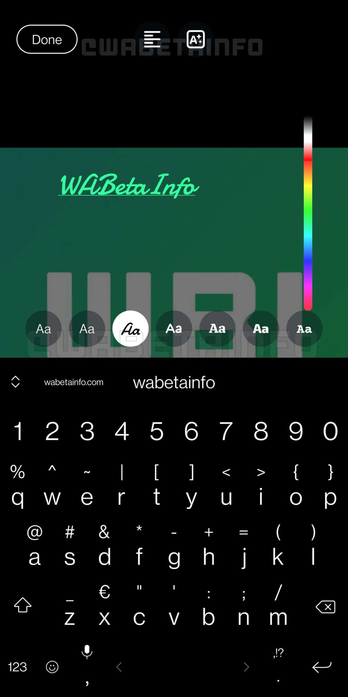 De acordo com o site WABetaInfo algumas pessoas que estão a experimentar a última versão beta (v2.23.7.17) está a receber uma nova experiência de edição de texto. Isto quando se sobrepõe texto numa imagem enviada a um contacto, ou como atualização de estado. No entanto a verdade é que a aplicação até já tinha esta capacidade. No entanto a última actualização juntou várias novas funcionalidades e opções de edição de texto.