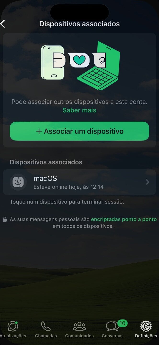 Felizmente, o WhatsApp mantém um registo detalhado de quem está ligado à tua conta. Segue estes passos para fazeres uma auditoria de segurança agora mesmo: