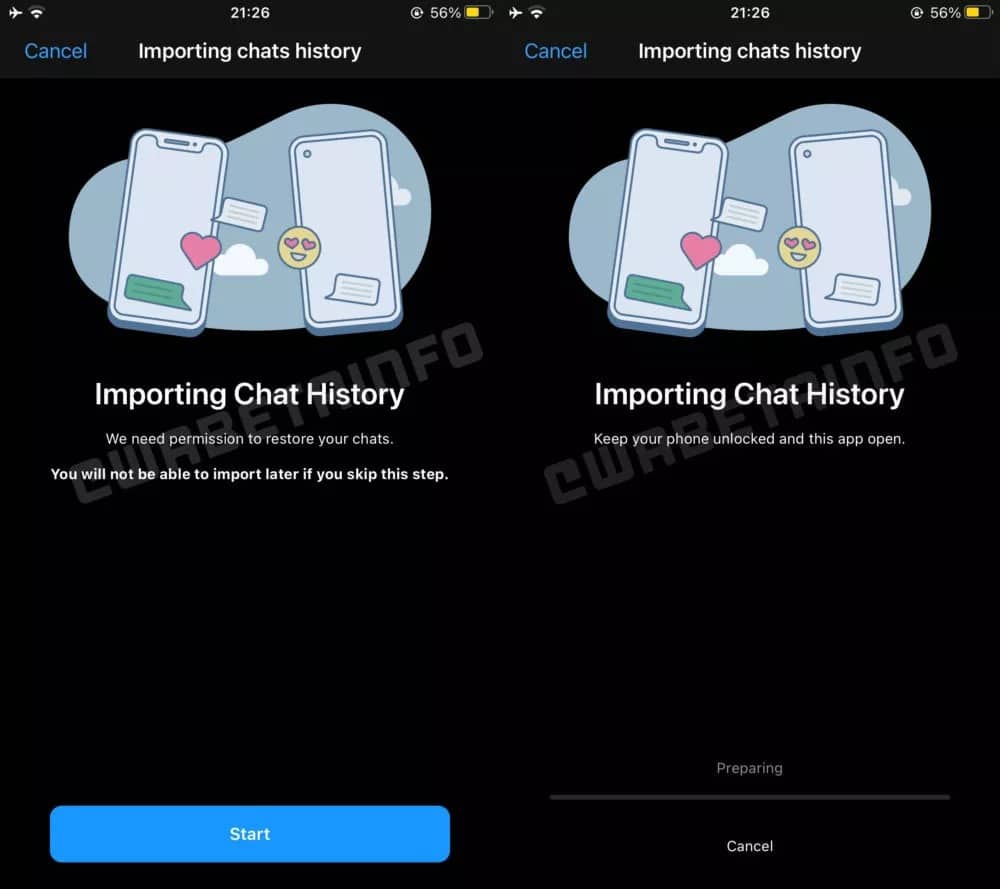 O site WABetaInfo revelou todas as novidades através de screenshots que revelam como se pode transferir as conversas de Android para iOS. Pode ver tudo abaixo: