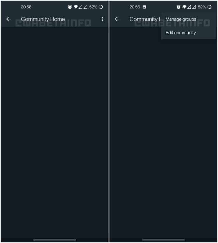 A site WABetaInfo relata que o centro de comunidades mostra todos os grupos ligados a uma comunidade específica do WhatsApp. Isto permite aos utilizadores gerirem melhor os grupos através da criação de diferentes comunidades. Entretanto haverá opções adicionais para ajudar os responsáveis, embora ainda não se saibam quais. A partir das imagens partilhadas, nota-se que a questão comunitária continua a ser um trabalho em curso. Assim está a poucas semanas ou meses de ser lançada.