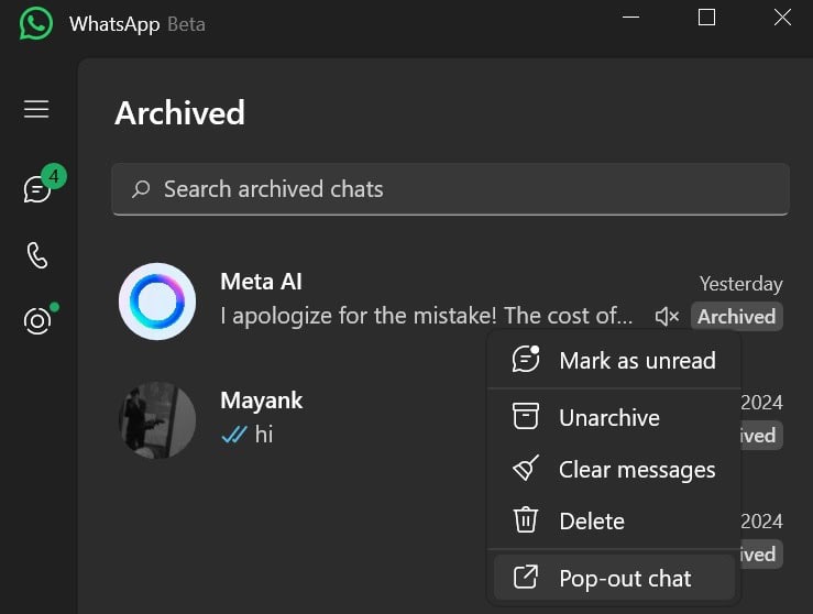 Entretanto o WhatsApp também está a testar a integração do “Meta AI” na aplicação para computador.