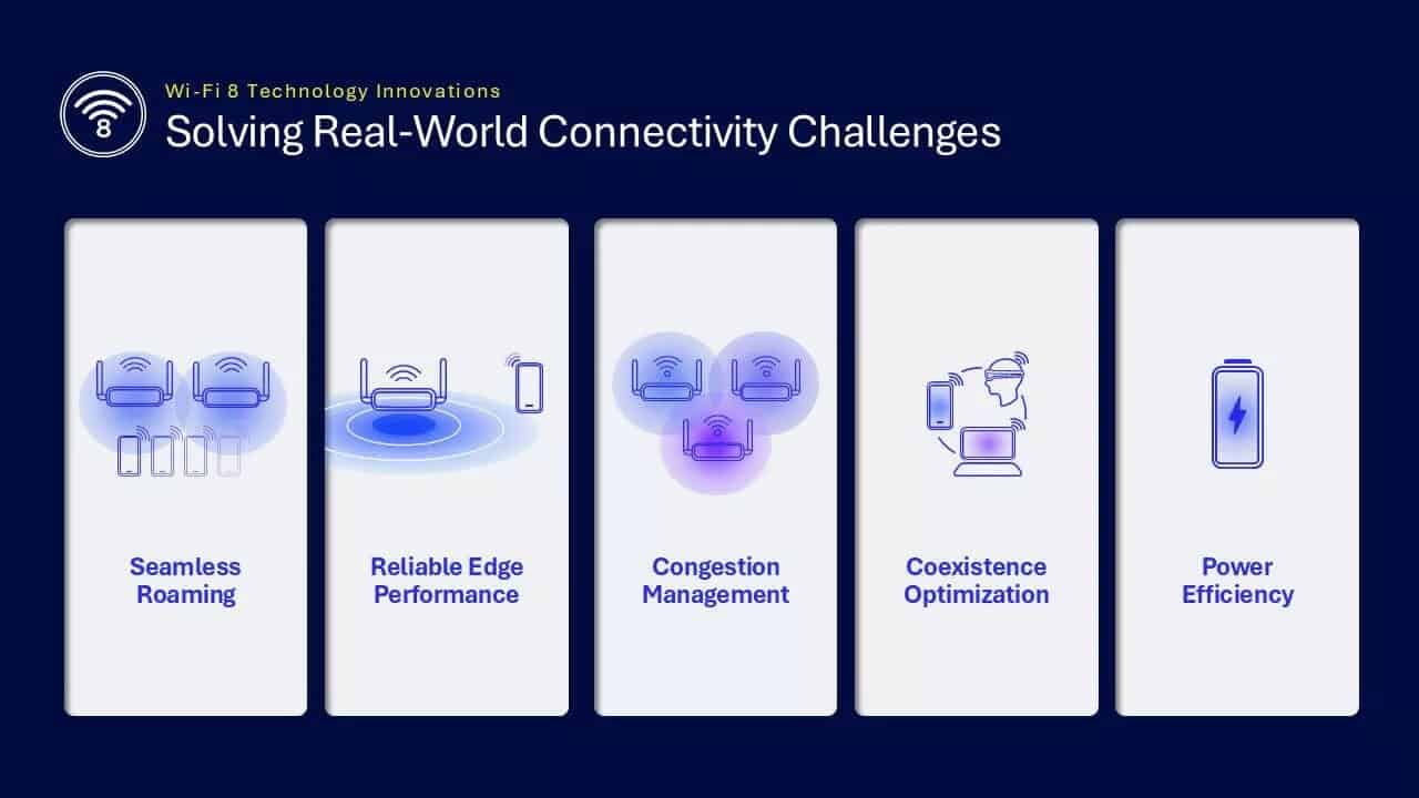 Outro ponto interessante é o foco na eficiência energética. Com a chegada de wearables mais exigentes e equipamentos que dependem de ligação constante, o Wi-Fi 8 quer garantir maior autonomia, otimizando como os sinais são enviados e recebidos, mesmo quando os componentes partilham a mesma antena.