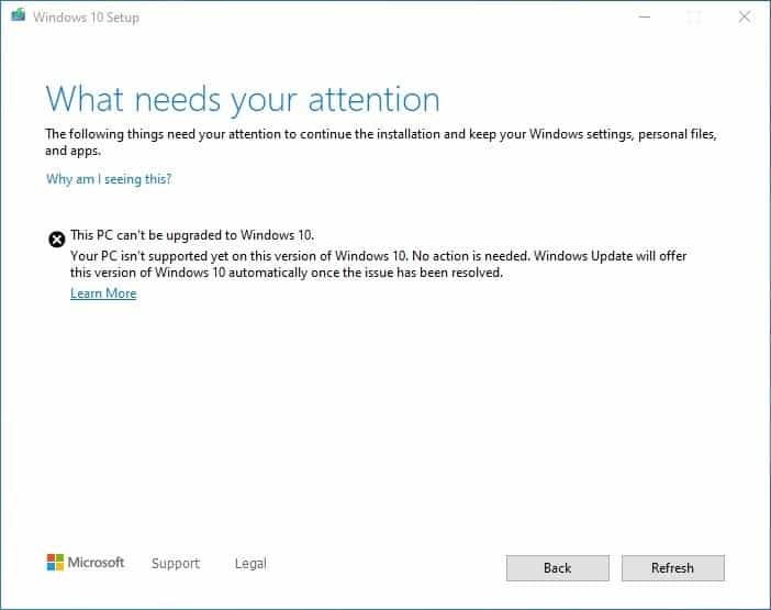 Os primeiros a darem conta deste bloqueio foram os possuidores do Surface Pro X. Tentam atualizar e surge uma mensagem a dizer que o PC não pode ser atualizado para o Windows 10. Inicialmente pensou-se que seria devido a algumas aplicações ou drivers. No entanto, parece que há mais do que isso.